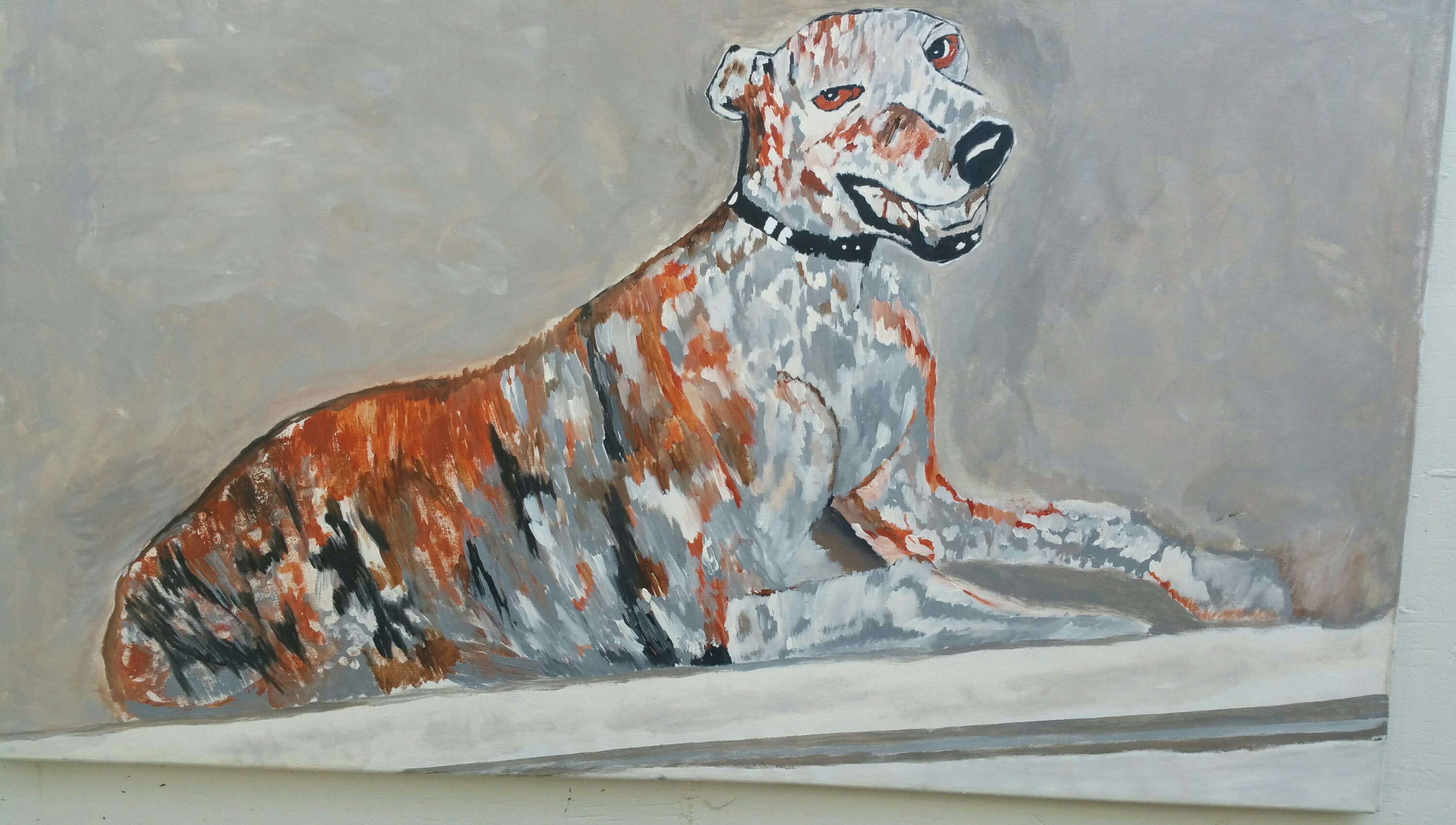 Dieses Acrylgemälde ‚Kindness‘ steht für Freundlichkeit, Stärke und Schönheit. Der Name des Hundes ist Julius C&A.