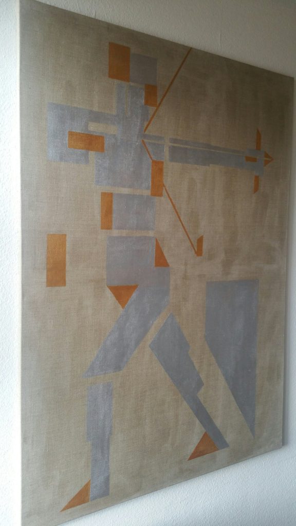 Gemälde „The Archer“ (Bogenschütze), gemalt von Herbie im Mai 2017, Acryl auf Leinwand ( Leinen ) 170 cm x 120 cm