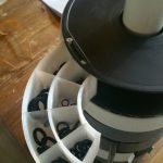 Damit ist es nun möglich die leeren Filamentspulen als Sammelbehälter für Kleinteile weiter zu verwenden. Darüber hinaus können die so umfunktionierten Spulen dann übereinander gestapelt werden und als platzsparendes Kleinteile-Reservoir dienen. Habe dazu ein altes IKEA-Tischbein aus Metall umfunktioniert, da die Spulen mit dem Innendurchmesser genau darüber geschoben und so gestapelt werden konnten. Nachstehende Fotos zeigen meine Lösung: