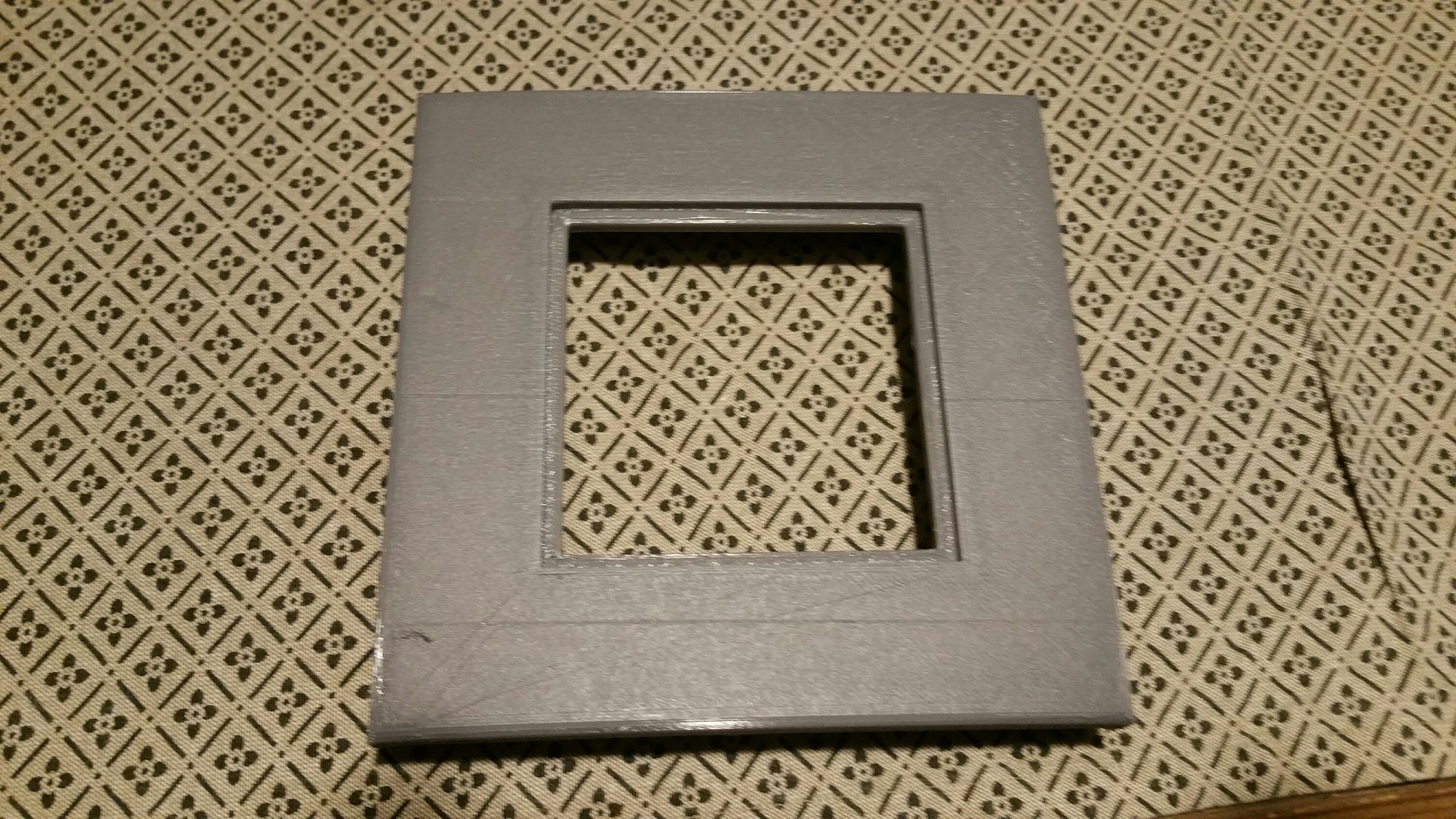 Der Druck des Rahmens in Originalgröße von ca. 157 x 157 mm sollte problemlos auf jedem handelsüblichen 3D- Drucker mit den entsprechenden Druckbettabmessungen möglich sein.
