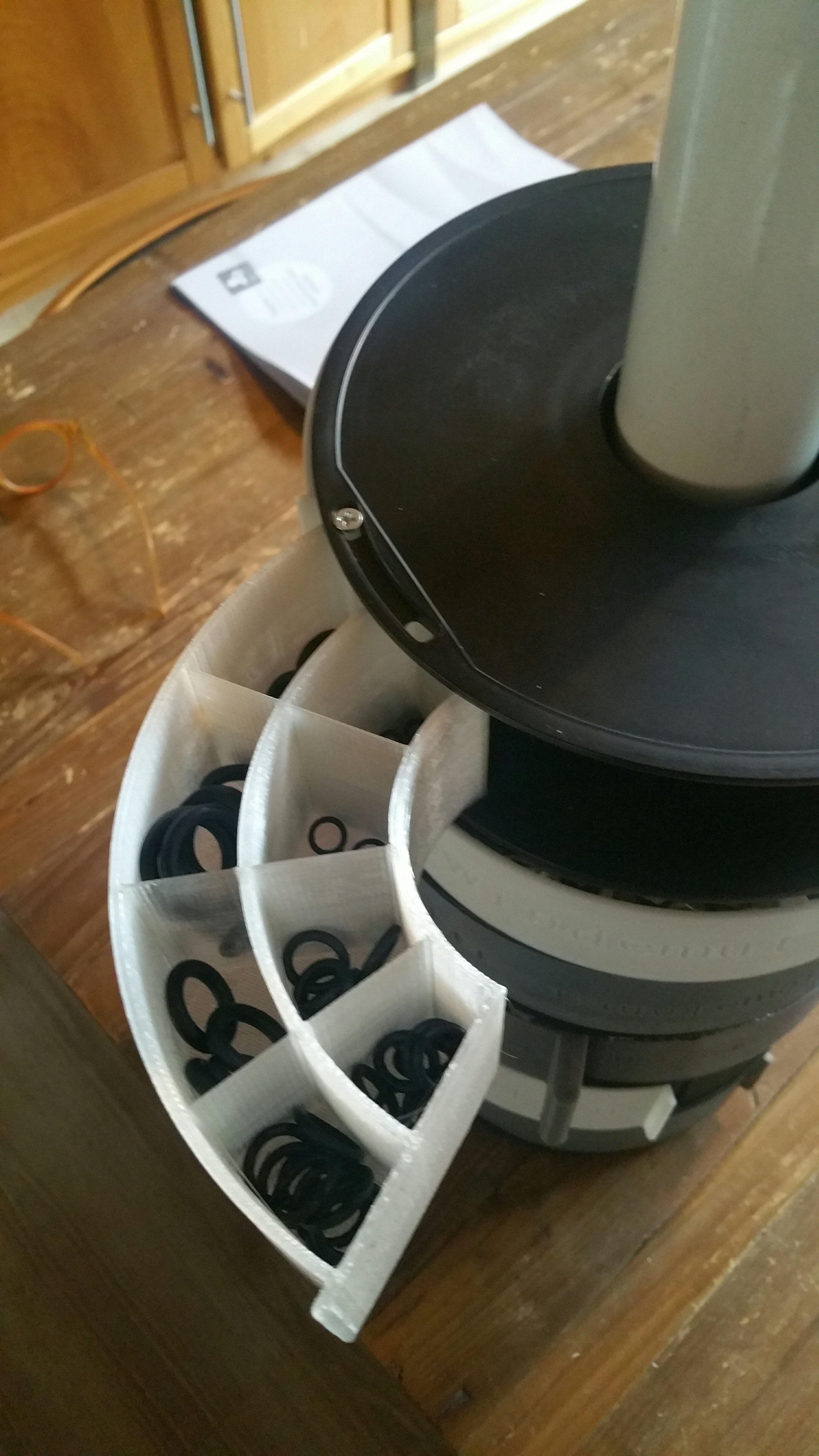 我决定将此设计更进一步,并根据我的特定需求对其进行修改。然后我将设计作为混音上传到Thingiverse,让其他人更容易使用并从中受益。Remix 可在https://www.thingiverse.com/thing:3198728找到,对于那些正在寻找节省空间的解决方案来存储小零件的人来说,这是一个很好的解决方案。
